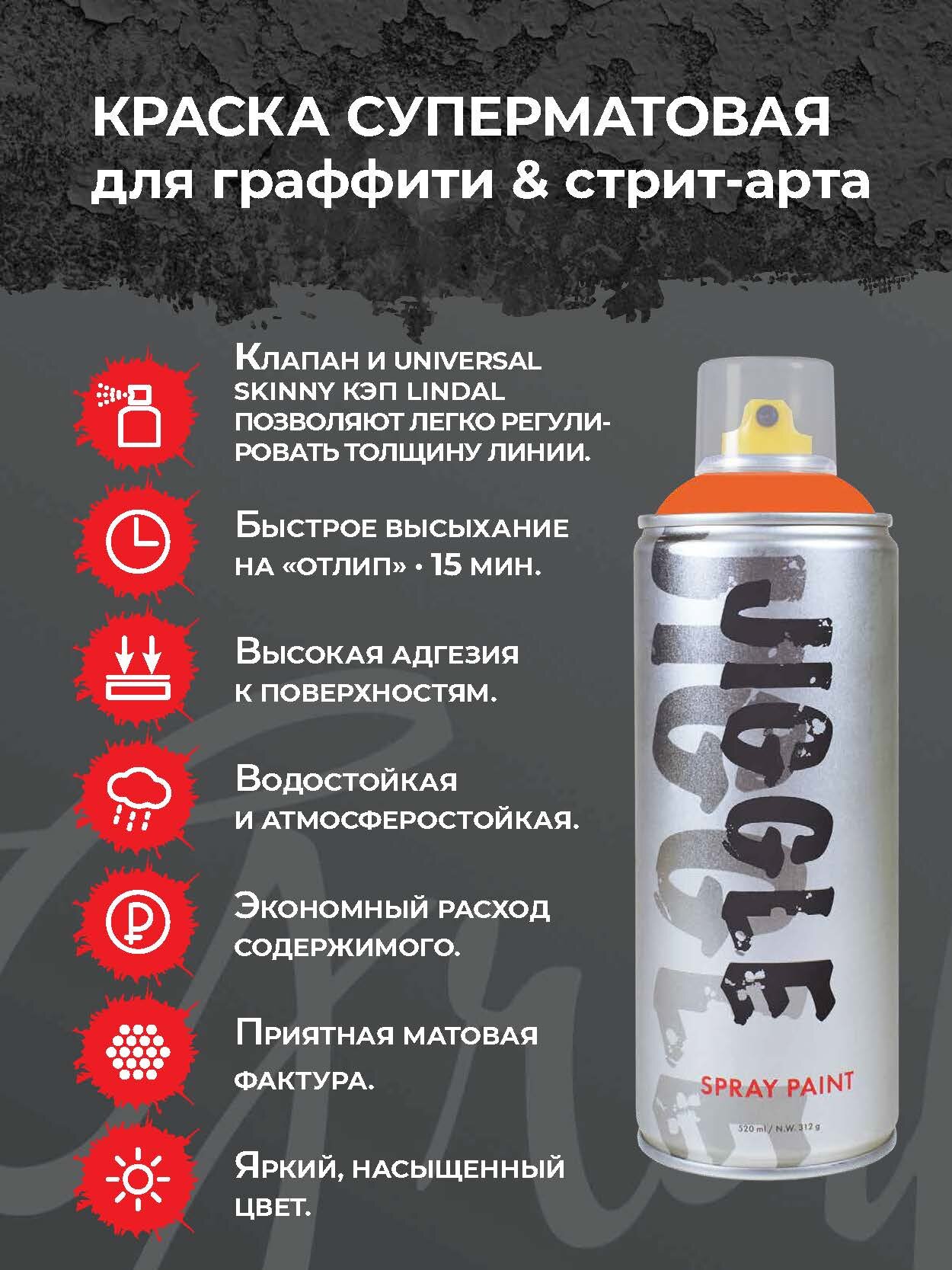 JIGGLE Аэрозольная краска для граффити суперматовая, 520 мл, цвет ORANGE / Апельсин интересное: