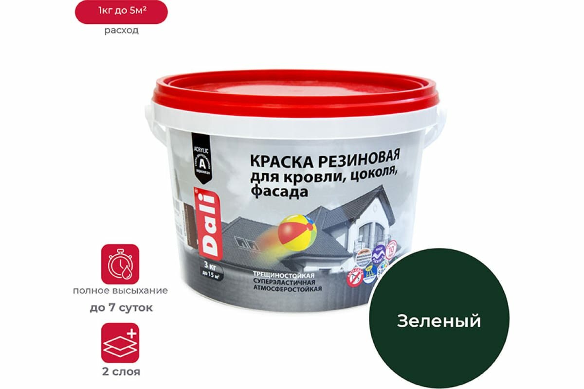 Краска DALI резиновая 3 кг зеленая интересное: