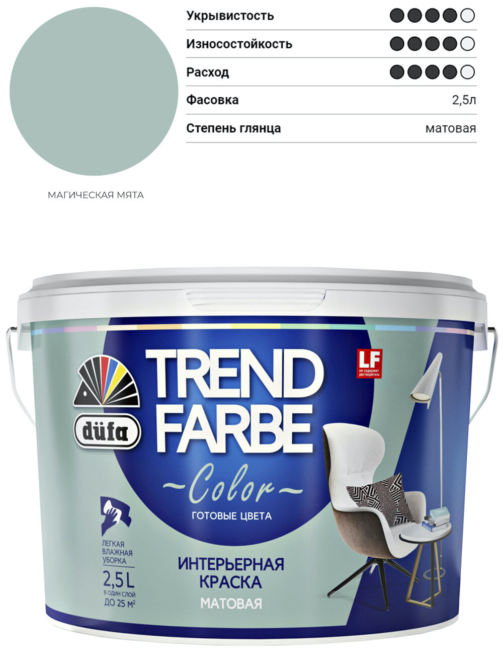 Купить Краска для стен и потолков водно-дисперсионная Dufa Trend Farbe матовая Магическая мята 2,5 л.