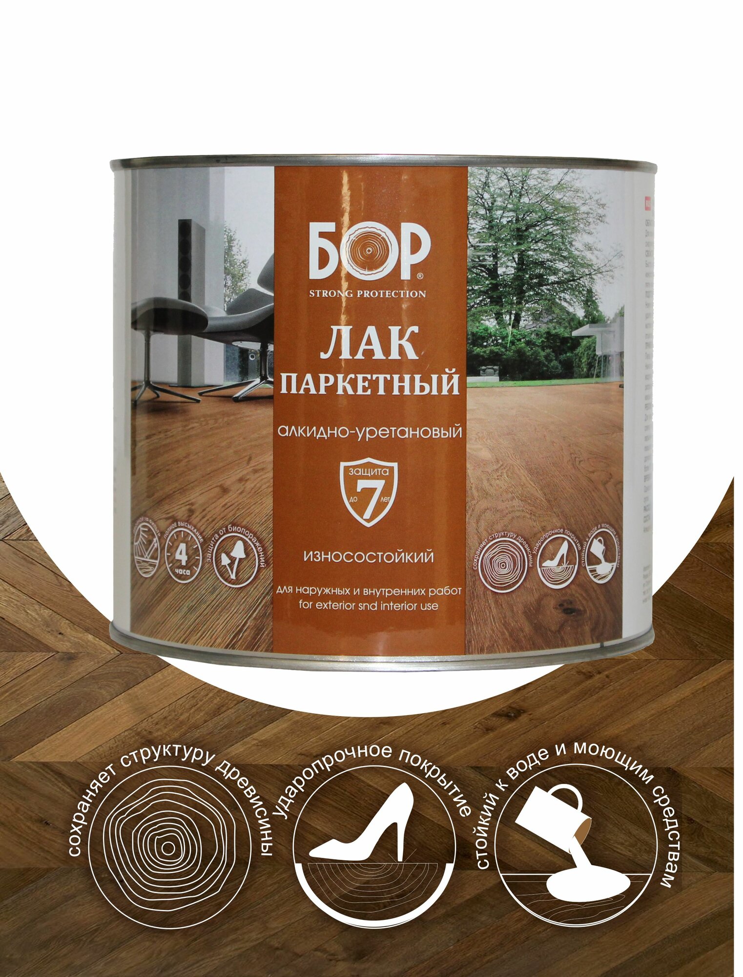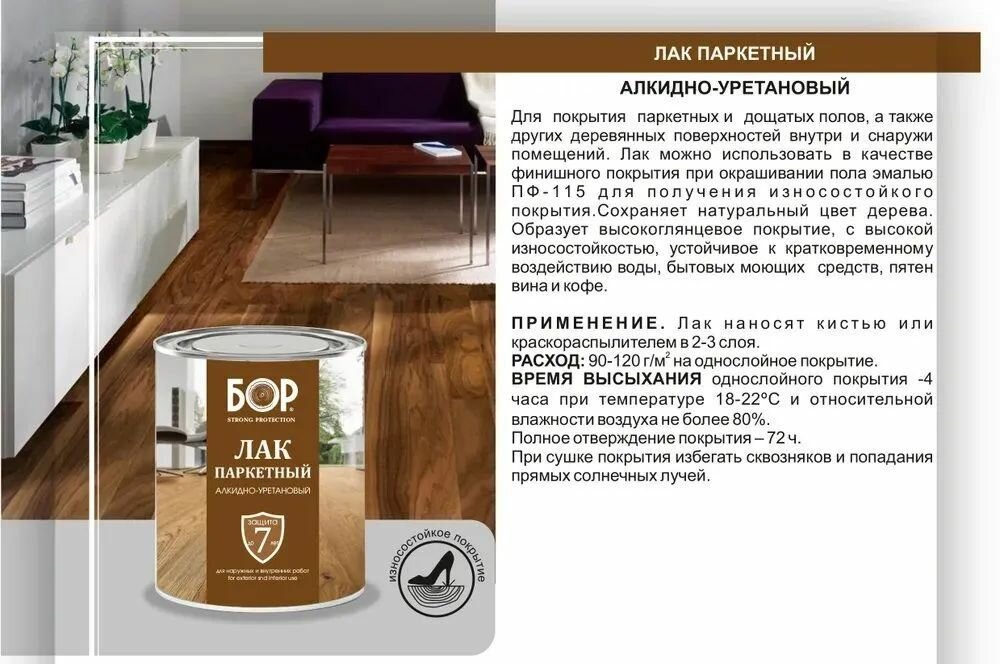 БОР Лак паркетный АУ-271, износостойкий, глянцевый, 8 кг интересное: