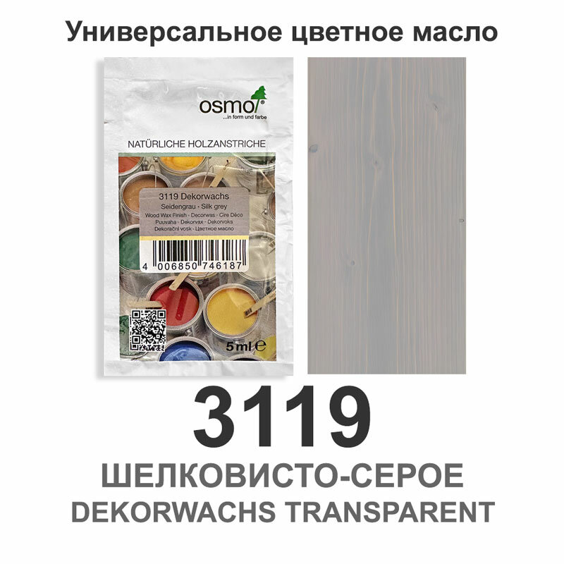 Купить Масло цветное, прозрачное Osmo 3119 Dekorwachs Transparente Tone 5 мл. (Шелковисто-серое)