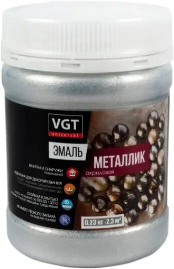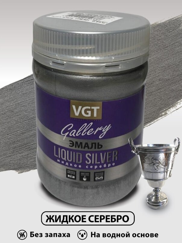 Купить Эмаль универсальная перламутровая VGT Gallery жидкий металл (0,23кг) серебро