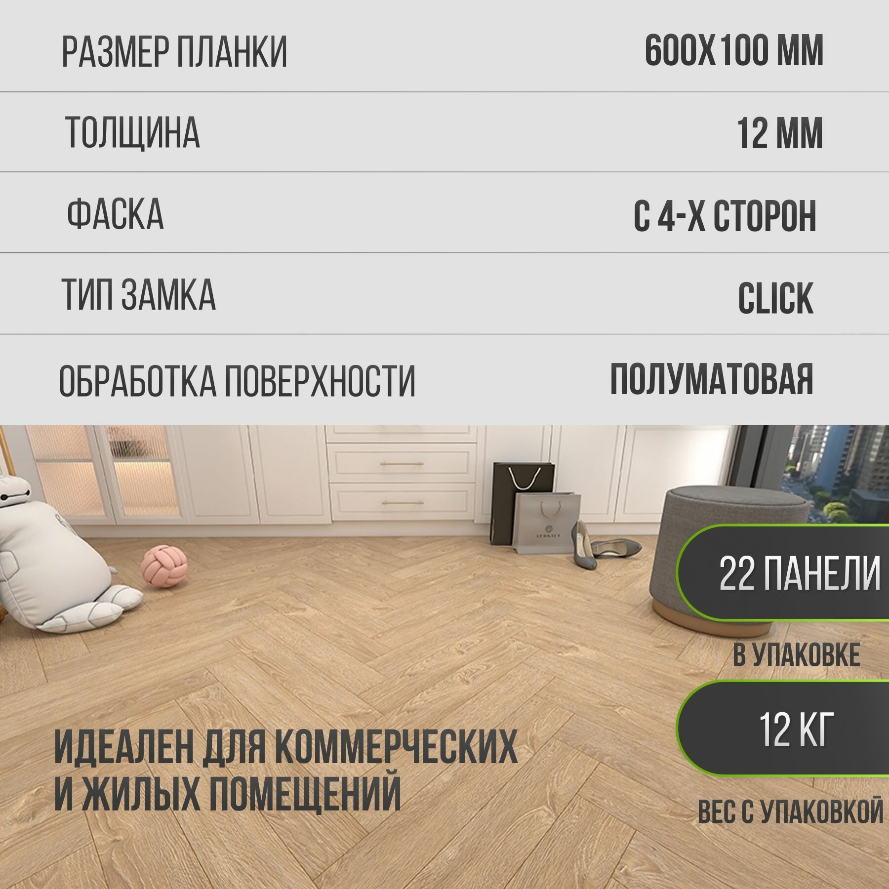 СохранитьЛаминат напольный влагостойкий WOODSTYLE ARROW 34 класс, толщина 12 мм с фаской, ДУБ ЮМИ 101 интересное: