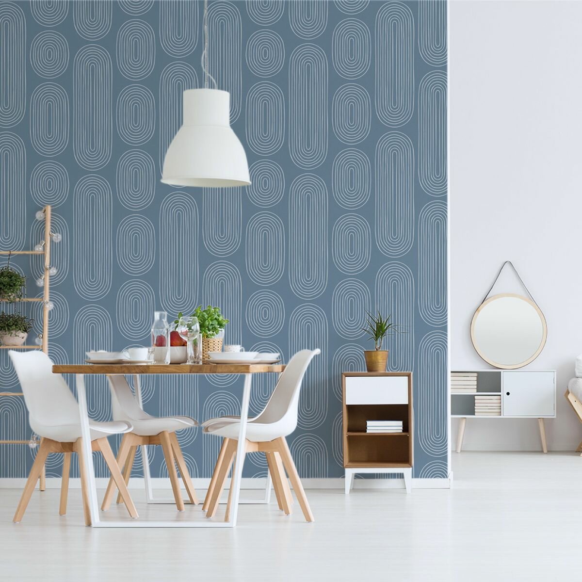 СохранитьОбои флизелиновые, геометрия белая на индиго, метровые, для кухни, Arco интересное:
