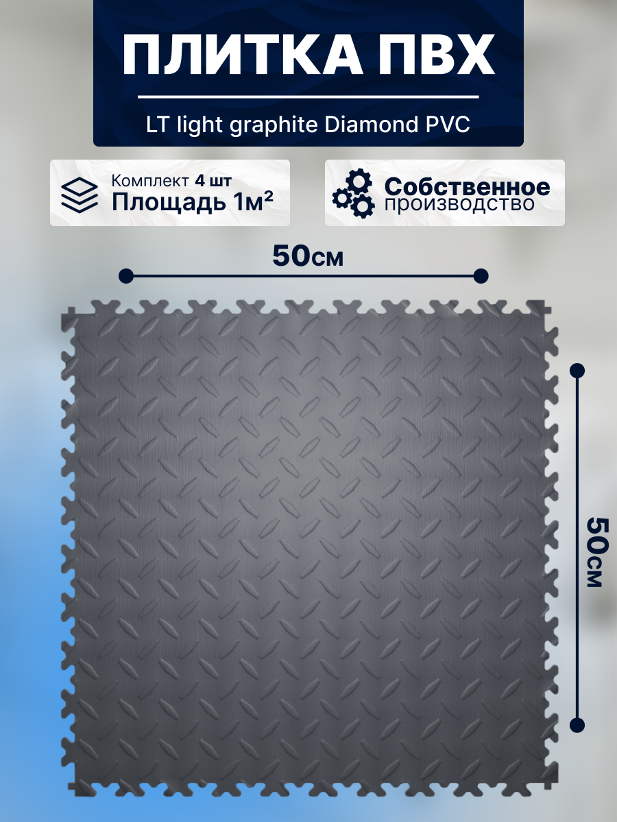 Плитка ПВХ модульная на пол LT light graphite Diamond PVC 500X500X5мм 43 класс интересное: