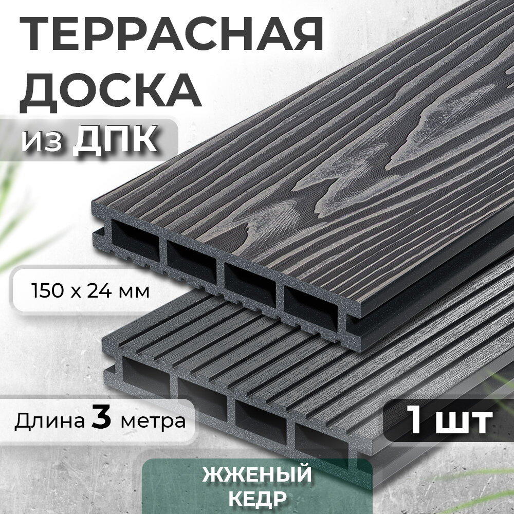 СохранитьТеррасная доска из ДПК Decking Urban, 150х24х3000 0,45м2 графит (Жженый Кедр) интересное: