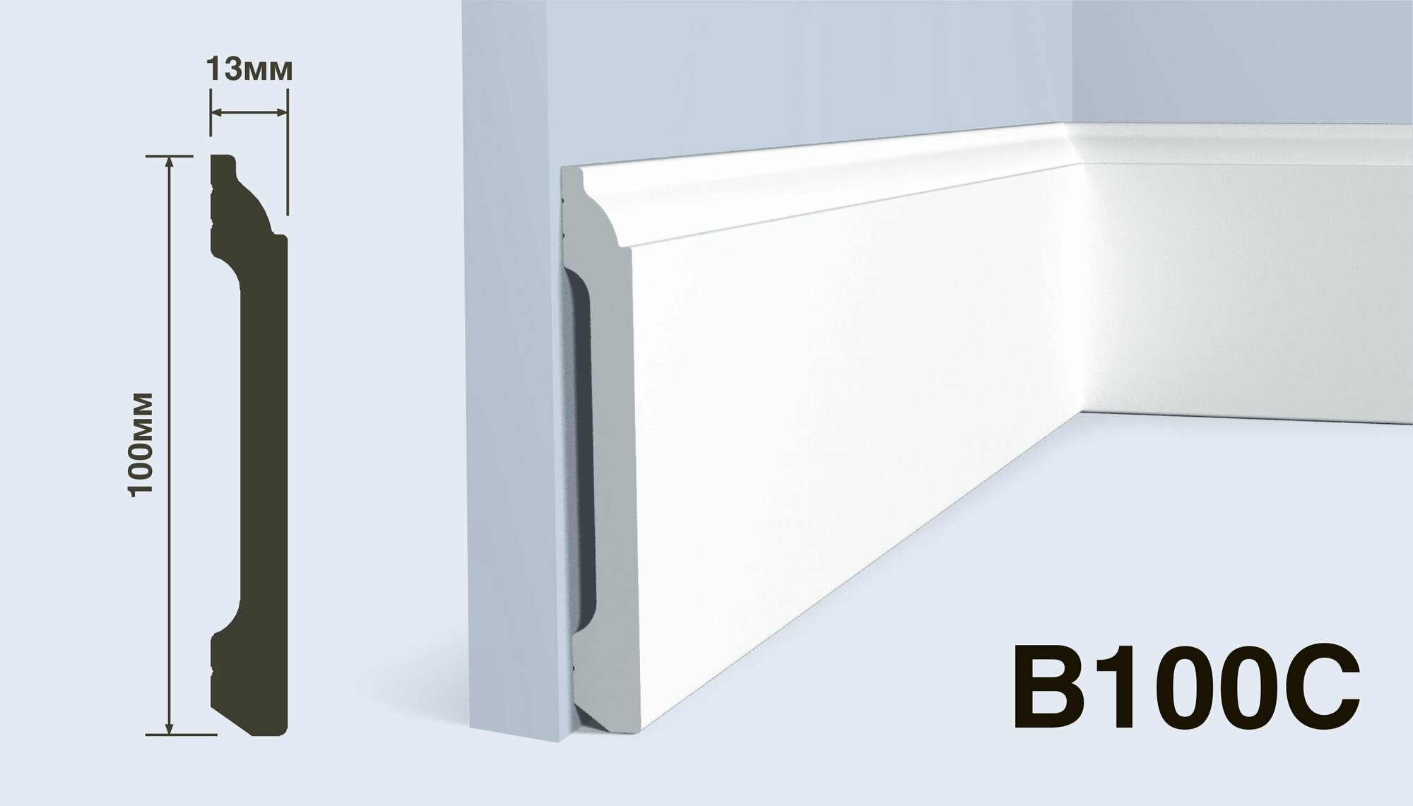 Плинтус Hiwood белый 13x100 мм напольный полиуретан полистирол высокий под покраску Перфект Plus B100C-2 метра