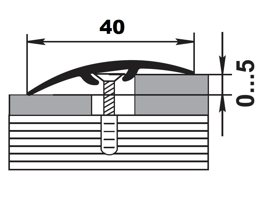 Порог со скрытым креплением одноуровневый для напольных покрытий, ширина 40мм, длина 1,8м, Русский профиль, Стык с дюбелем 40 мм 1,8 токио