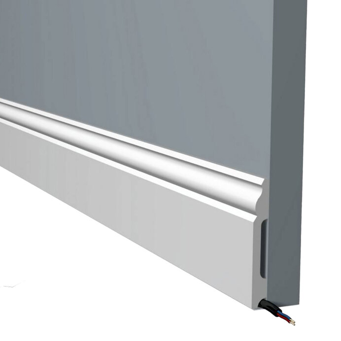Плинтус с подсветкой LED дюрополимер напольный Paolo Arte Konture (Паоло Арте Контур), 100х18х2000 мм, Kr038P белый