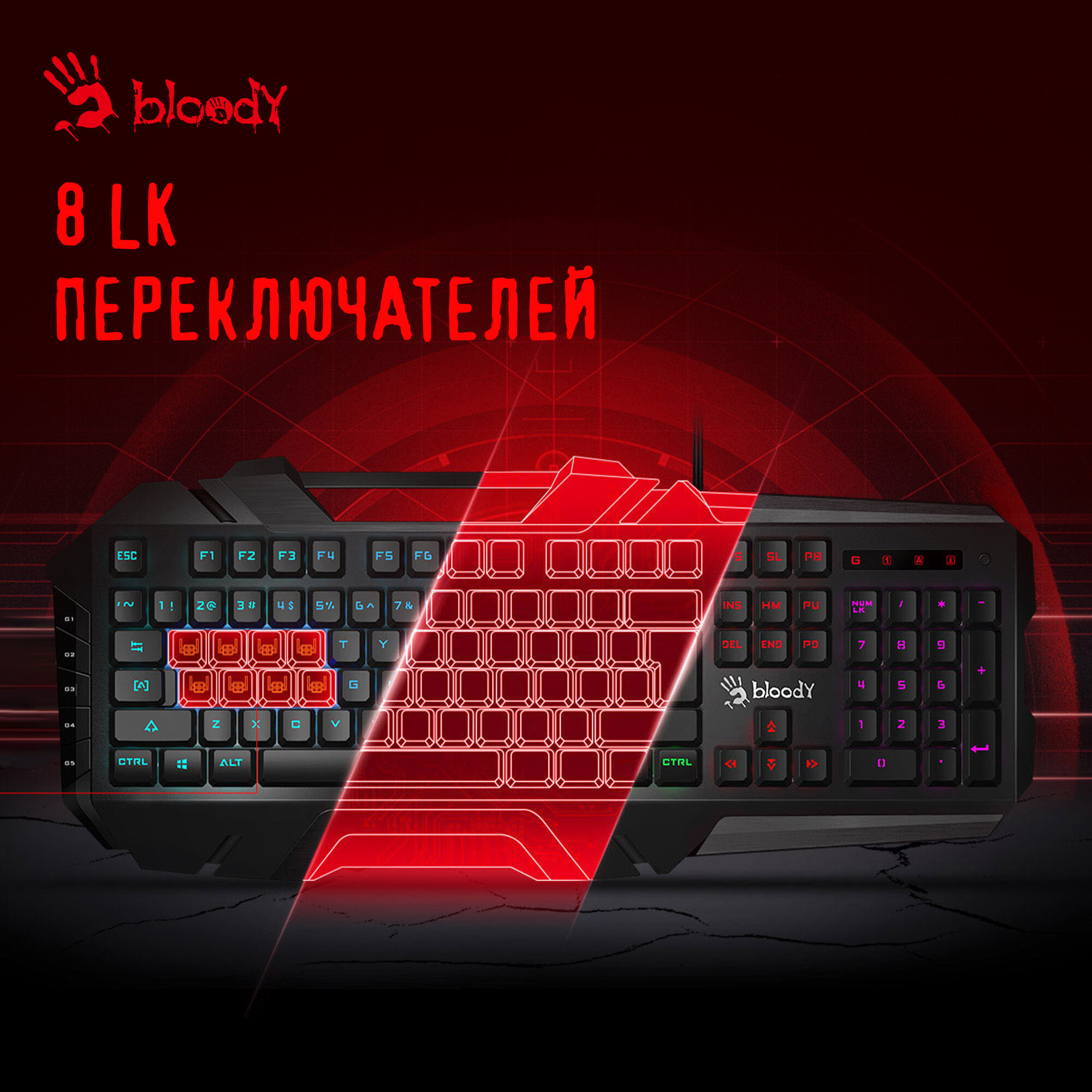 Клавиатура A4TECH Bloody B3590R, USB, черный серый