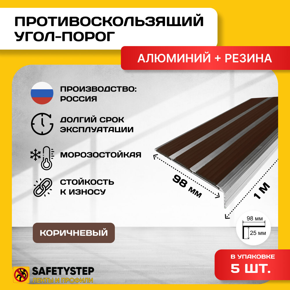 | Дополнительная информация | Алюминиевый угол-порог с 3 резиновыми вставками, длина 1 метр, ширина 98 мм, высота 25 мм, 5 штук |