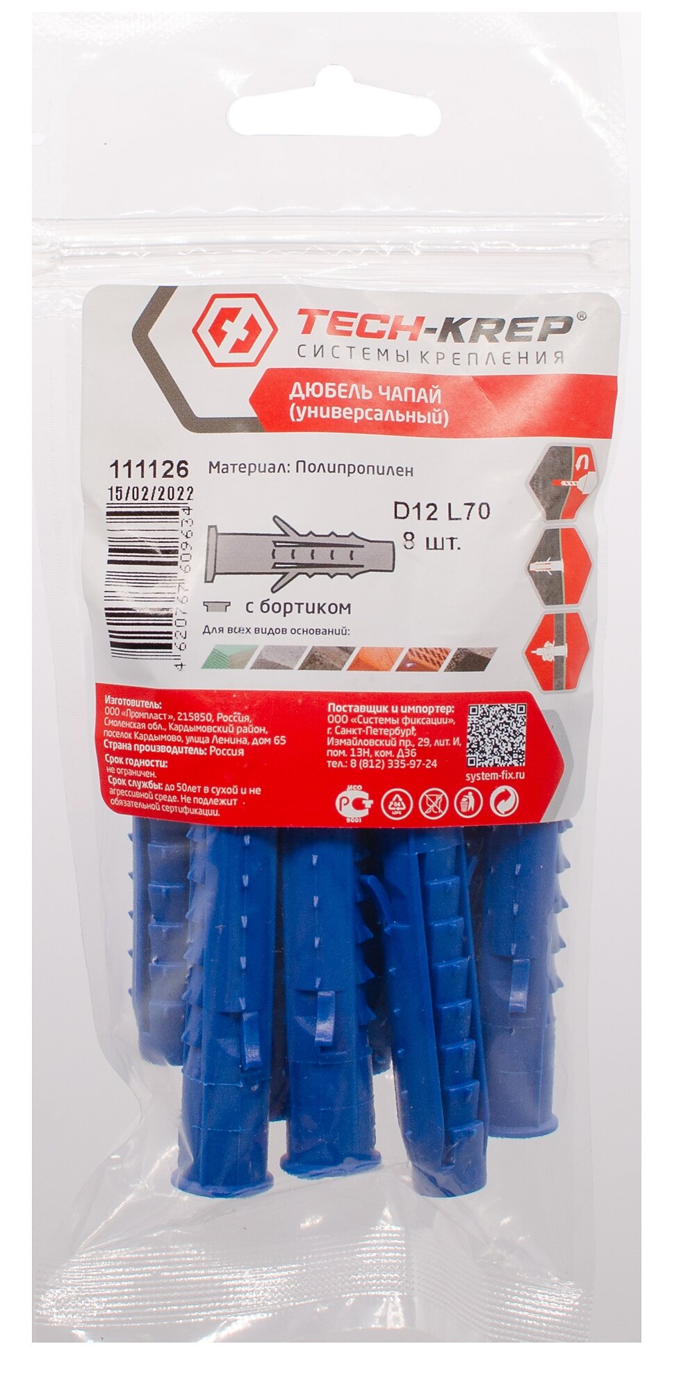 | Дополнительная информация | Дюбель распорный Tech-KREP Чапай 12х70 мм 8 шт |