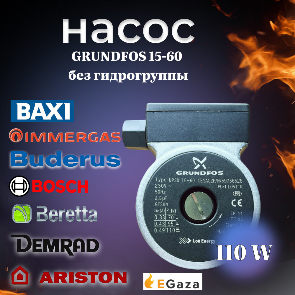 Насос Grundfos для котлов BAXI, 15-60, 110 W, без гидрогруппы интересное: