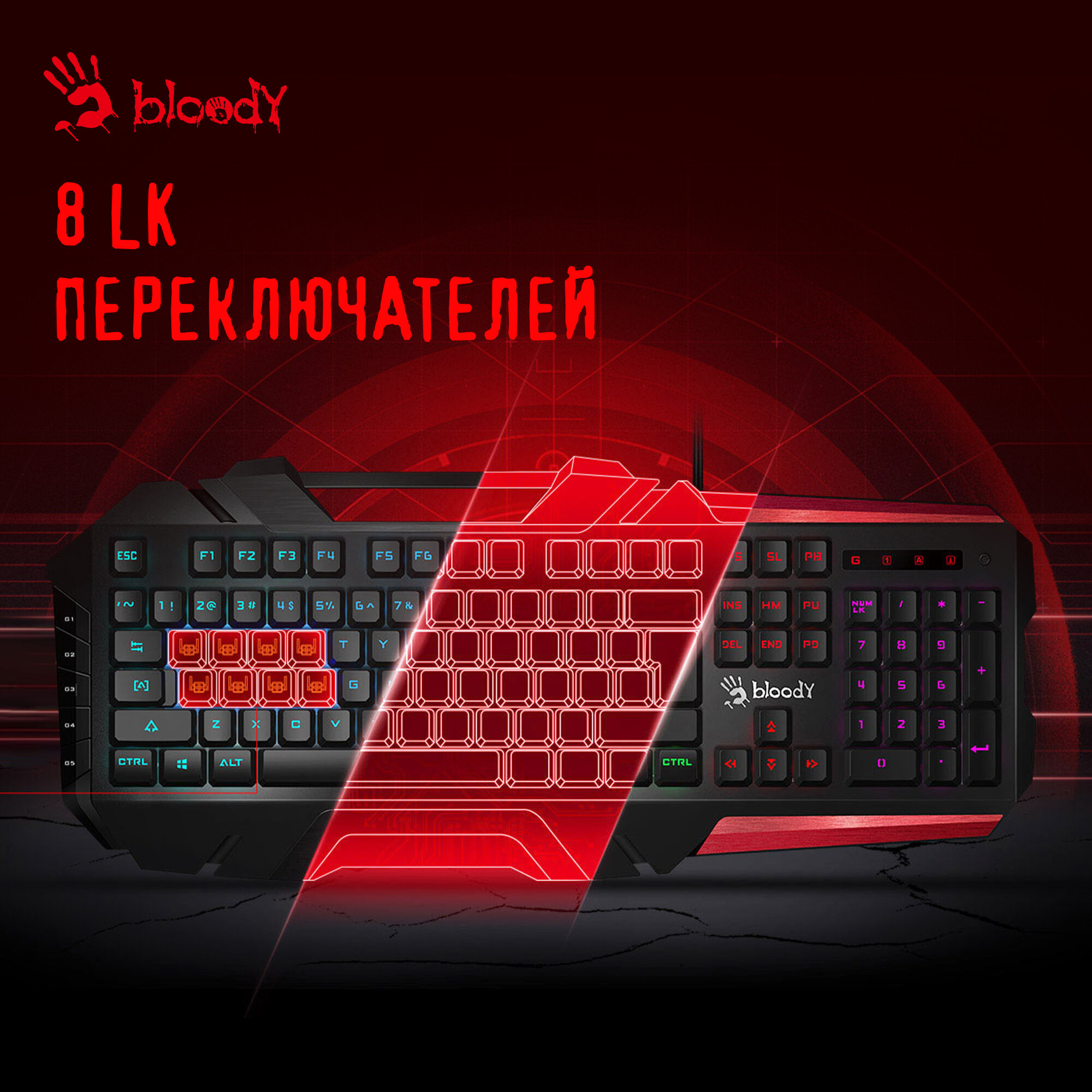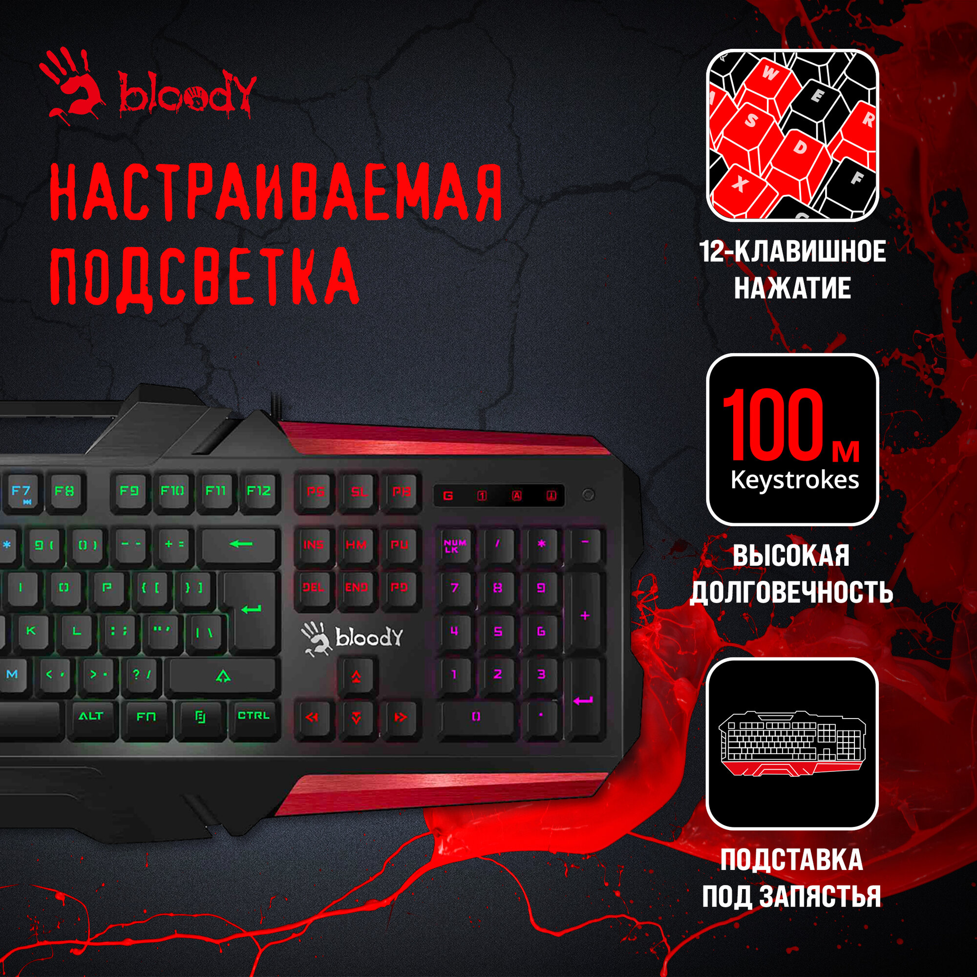 Клавиатура A4TECH Bloody B3590R, USB, черный + красный [b3590r (black+red)] интересное:
