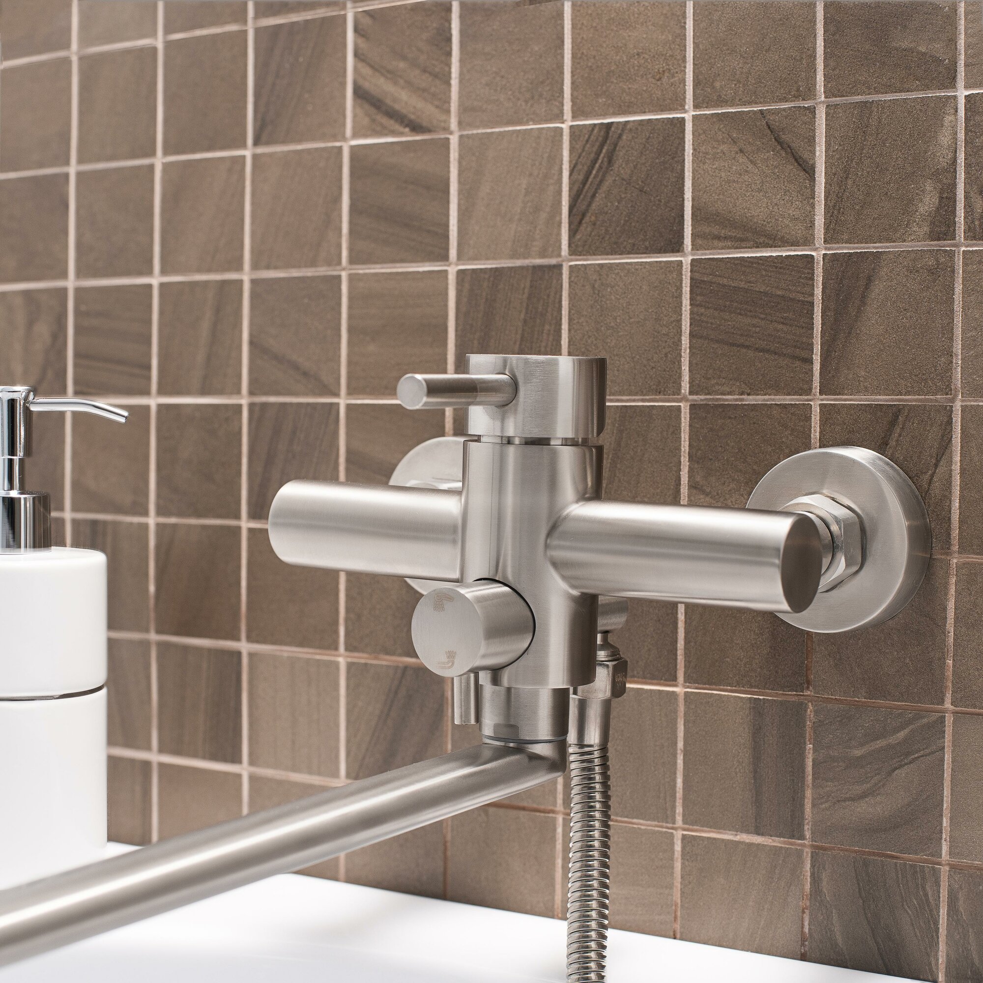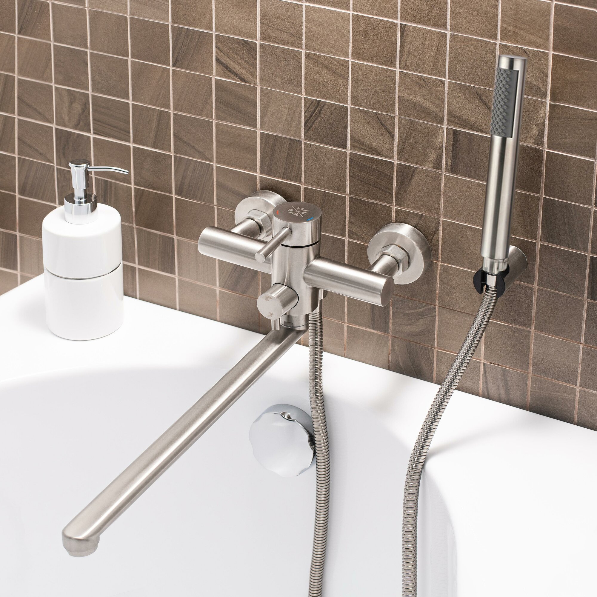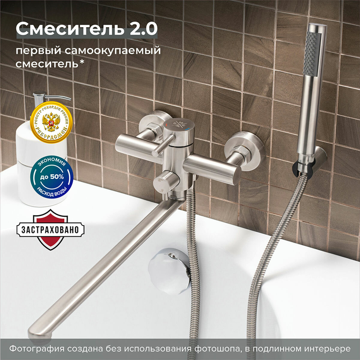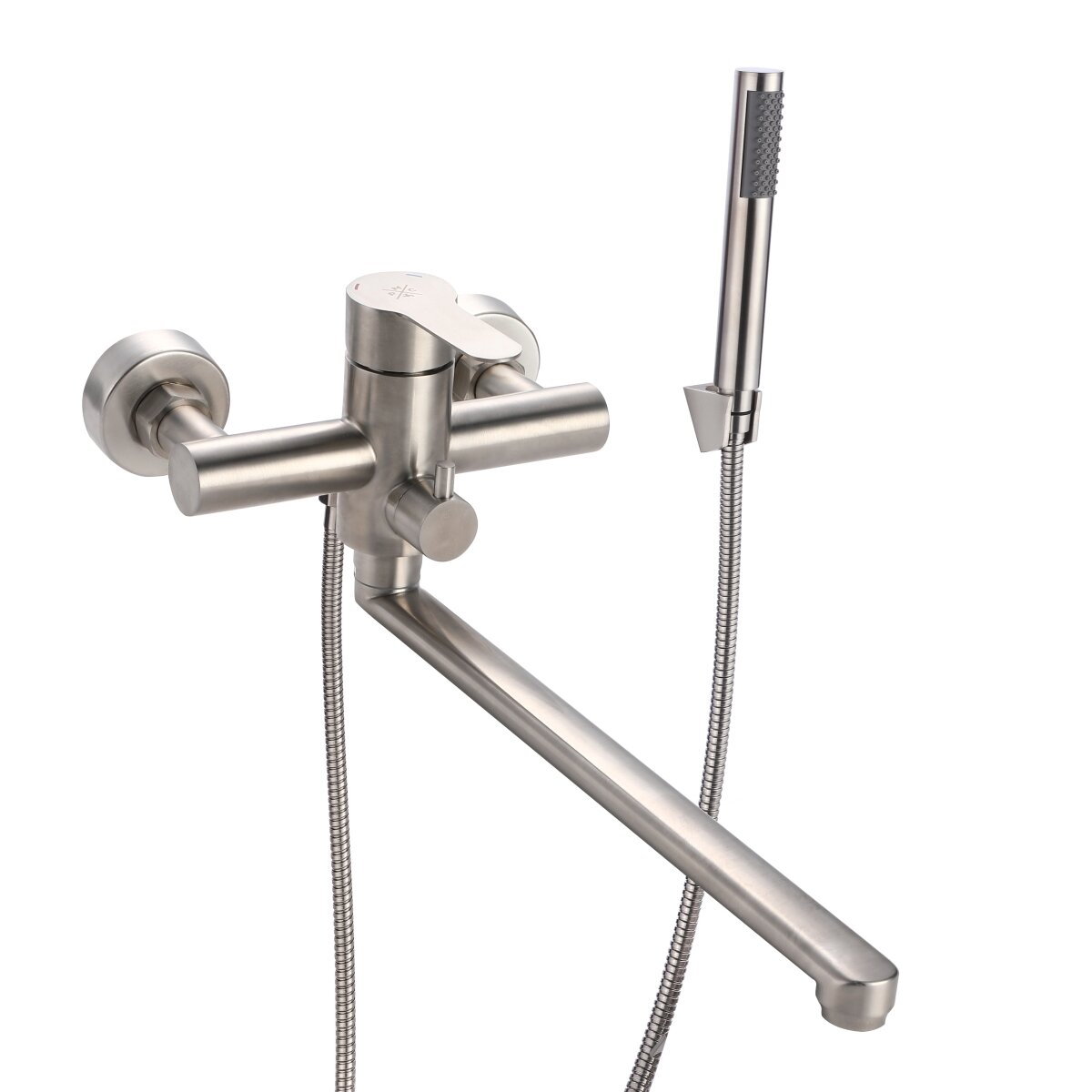 Смеситель для ванны, РМС SUS124-006EP, нержавеющая сталь, длинный поворотный излив, с душевой лейкой интересное: