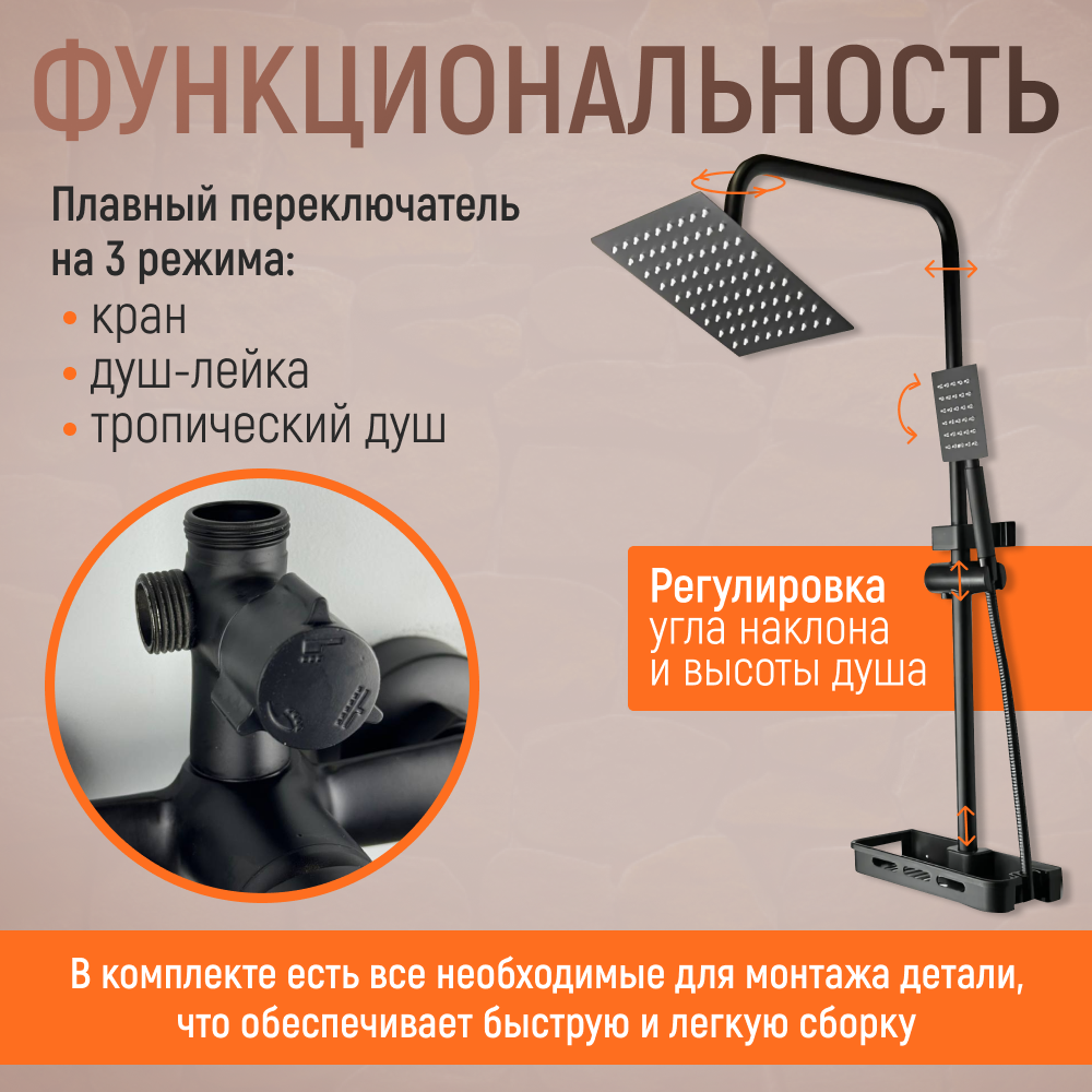 Душевая система с тропическим душем, черная, гарнитур в ванную интересное: