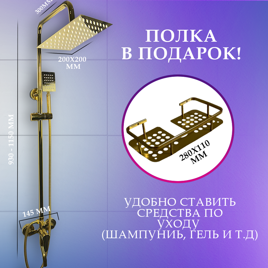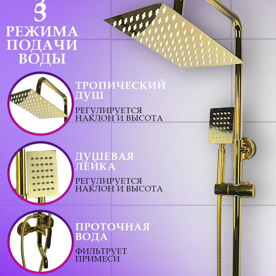 Душевая система с тропическим душем, золотая , гарнитур в ванную 3 в 1 интересное: