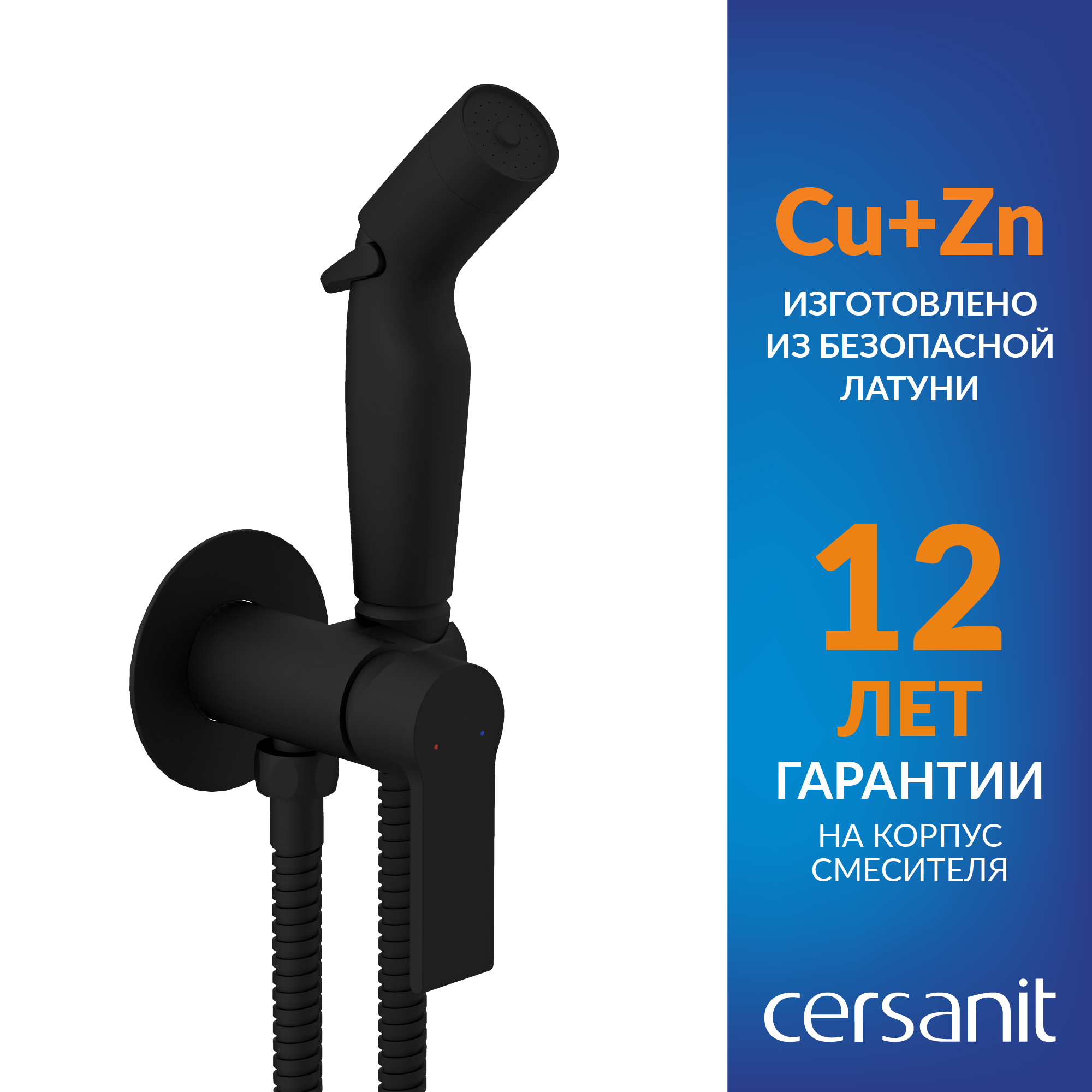 Купить Смеситель гигиенический с гигиеническим душем встраиваемый Cersanit Brasko Black со скрытой частью в комплекте черный (64103)