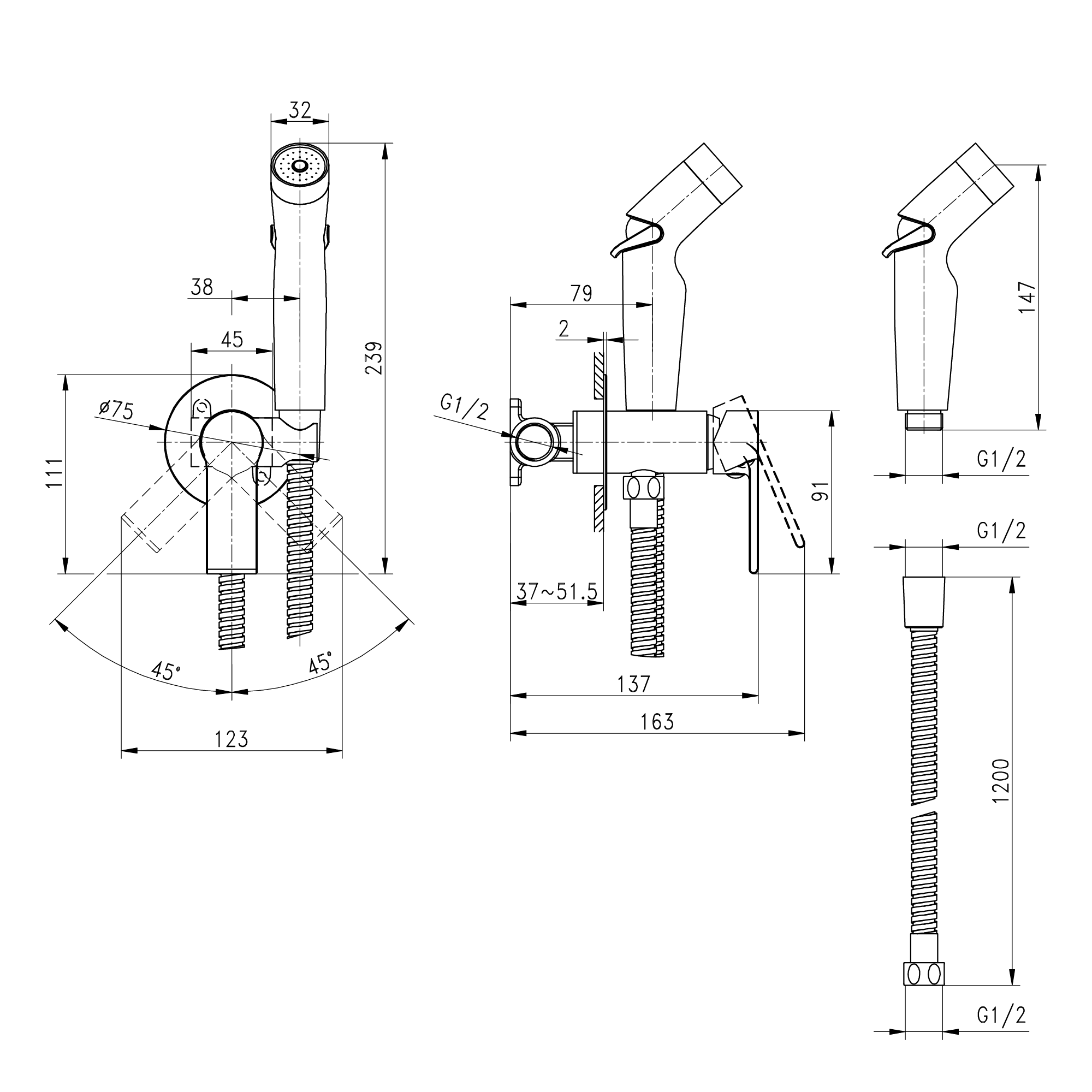 | Комплектация | рукоятка / Лейка гигиенического душа / подключение для шланга / шланг в металлической оплетке 1/2" 120см / паспорт изделия с гарантийным талоном / инструкция по эксплуатации |