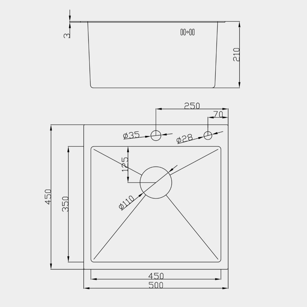 Мойка для кухни врезная из нержавеющей стали, сатин, 50х45х21 см интересное: