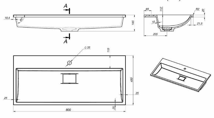 | Число размеченных отверстий под смеситель | отсутствуют |