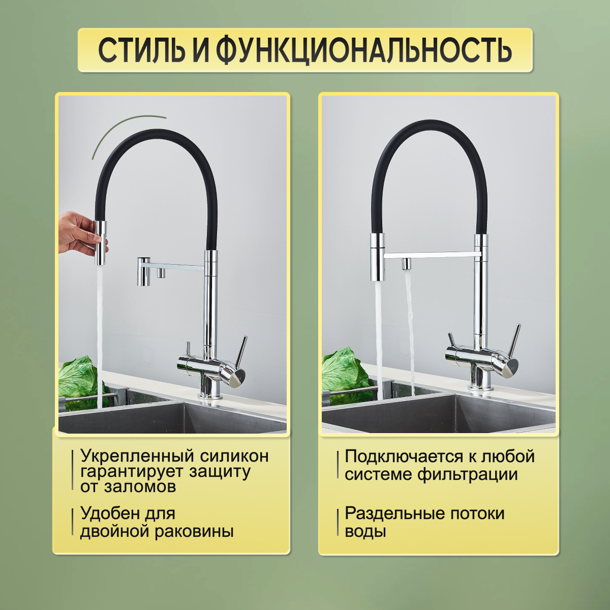 | Излив | гибкий, для фильтрованной воды, поворотный |
