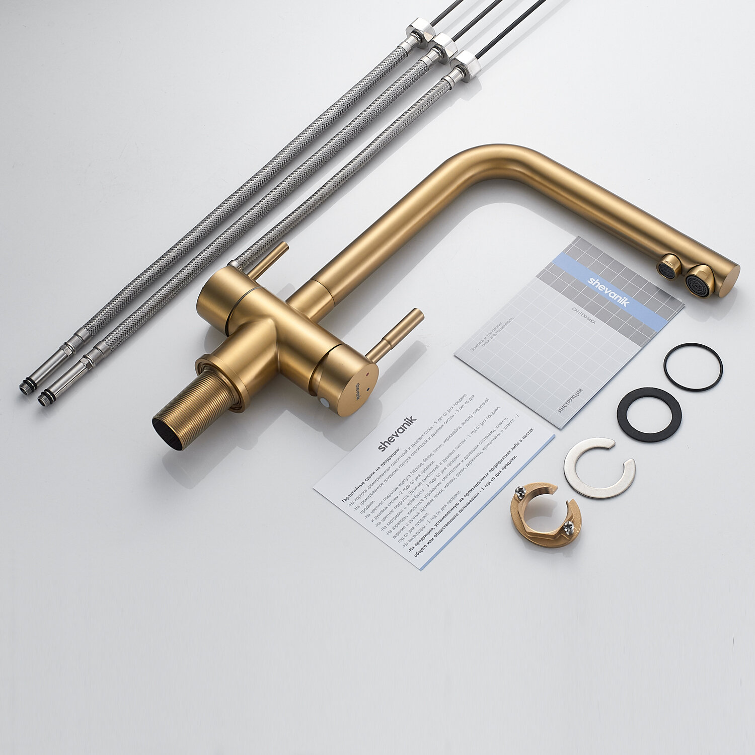 Смеситель для кухни с подключением фильтра Shevanik S468G, золотой сатин