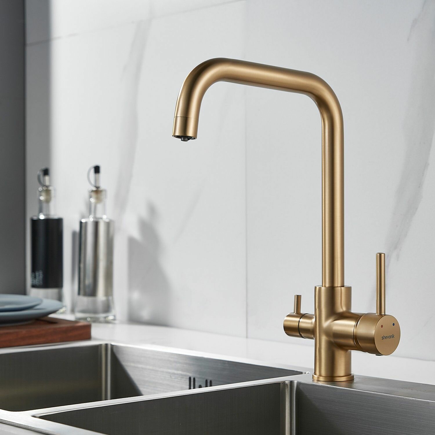 Ниже Вы можете прочитать отзывы на Смеситель для кухни с подключением фильтра питьевой воды Shevanik S228G Золотой сатин, ознакомится с подробными характеристиками, посмотреть интересные обзоры и фотографии на Смеситель для кухни с подключением фильтра питьевой воды Shevanik S228G Золотой сатин.