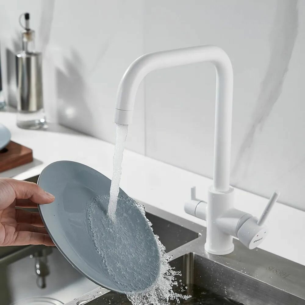Купить Смеситель для кухни с подключением фильтра питьевой воды S228С, белый