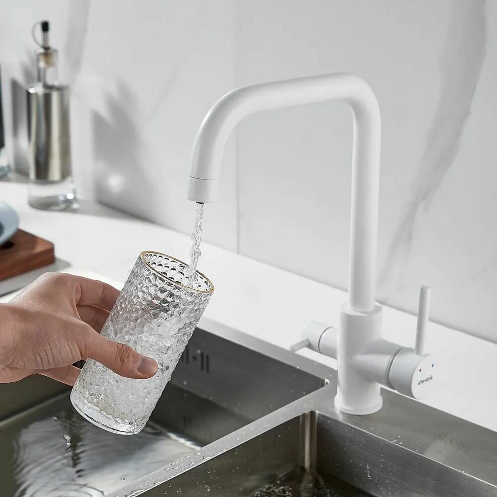 Смеситель для кухни с подключением фильтра Shevanik S228C, белый