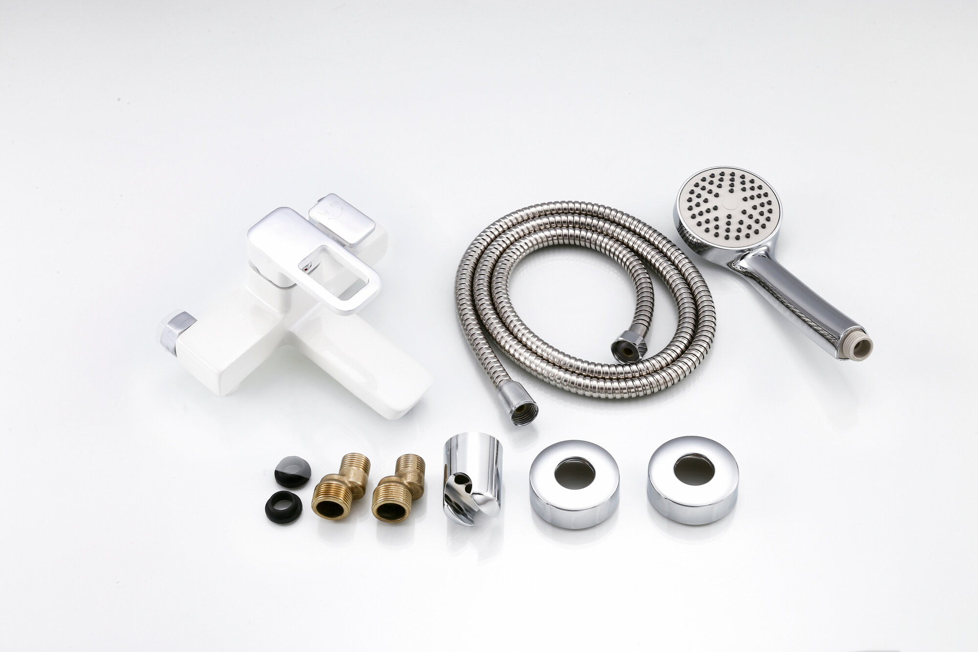 | Комплектация | Инструкция, Отражатели (2 шт), Эксцентрики (2 шт), Лейка для душа, Шланг для душа 1, 5 м, Настенное крепление для душа |