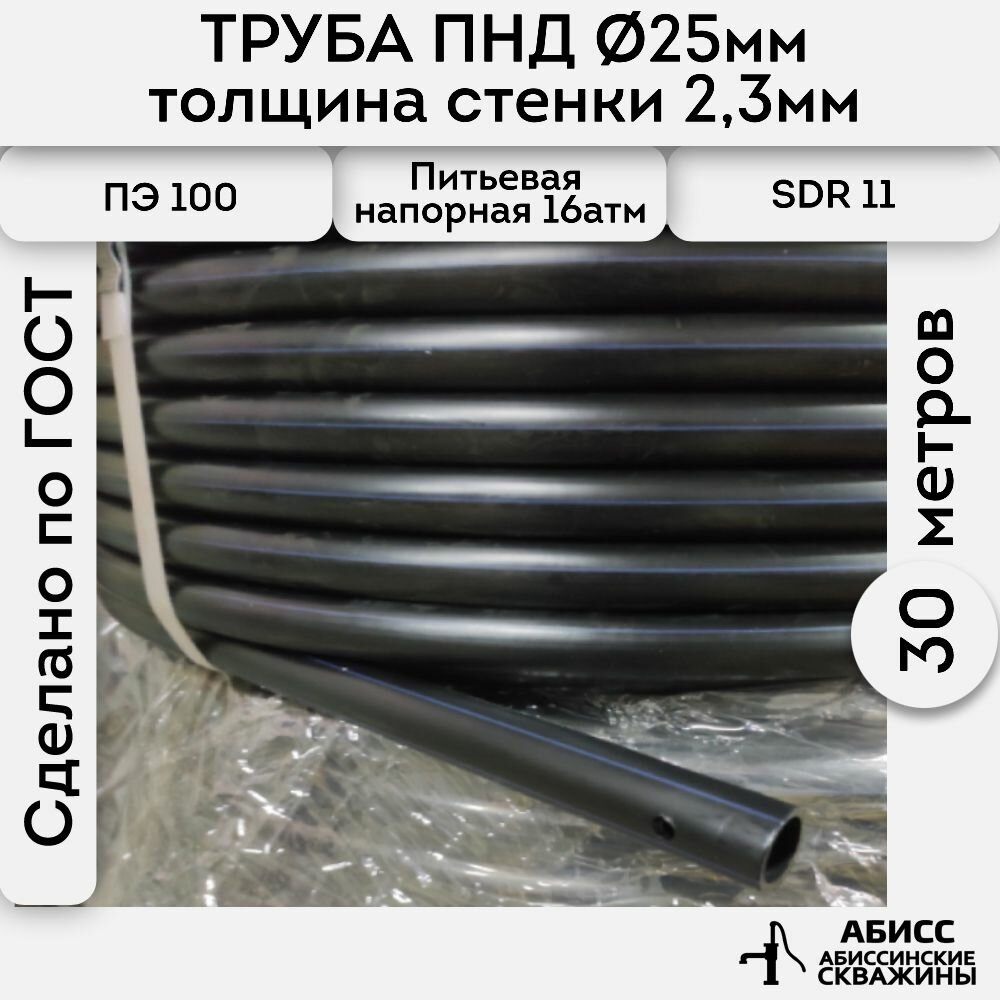 Купить Труба ПНД 25х2,3 длина 30метров. толщина стенки 2,3мм. водопроводная питьевая напорная (16атм) ПЭ100, SDR11 ГОСТ18599-2001
