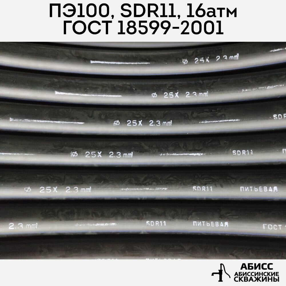 СохранитьТруба ПНД 25х2,3 длина 50метров. толщина стенки 2,3мм. водопроводная питьевая напорная (16атм) ПЭ100, SDR11 ГОСТ18599-2001 интересное: