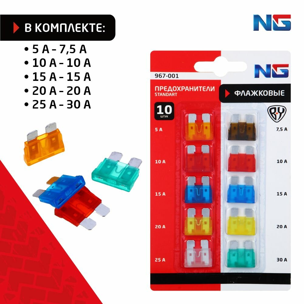 Купить NG Предохранители флажковые STANDART 5-30 А, набор 10 шт