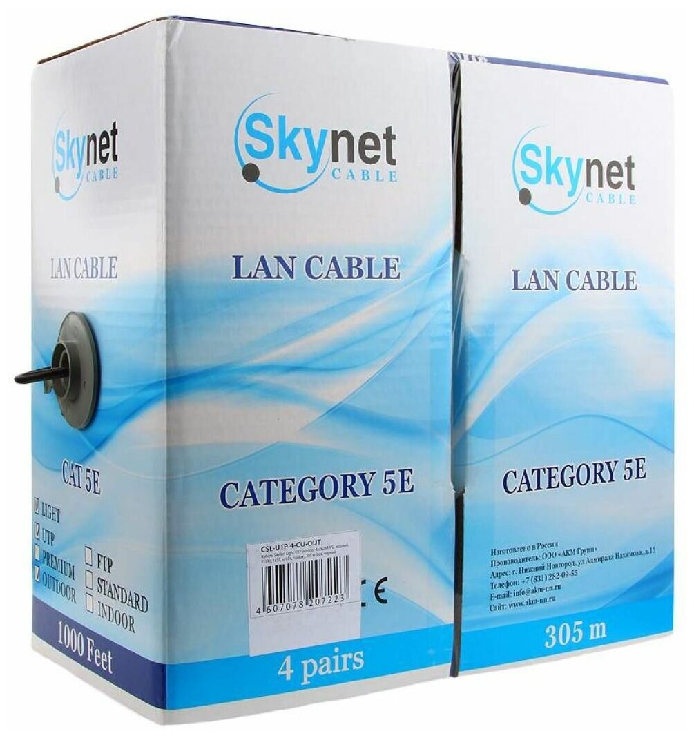 Кабель сетевой SkyNet UTP для внешней прокладки 4x2x0,46, медный, Fluke Test, кат.5e, (305м) box, че