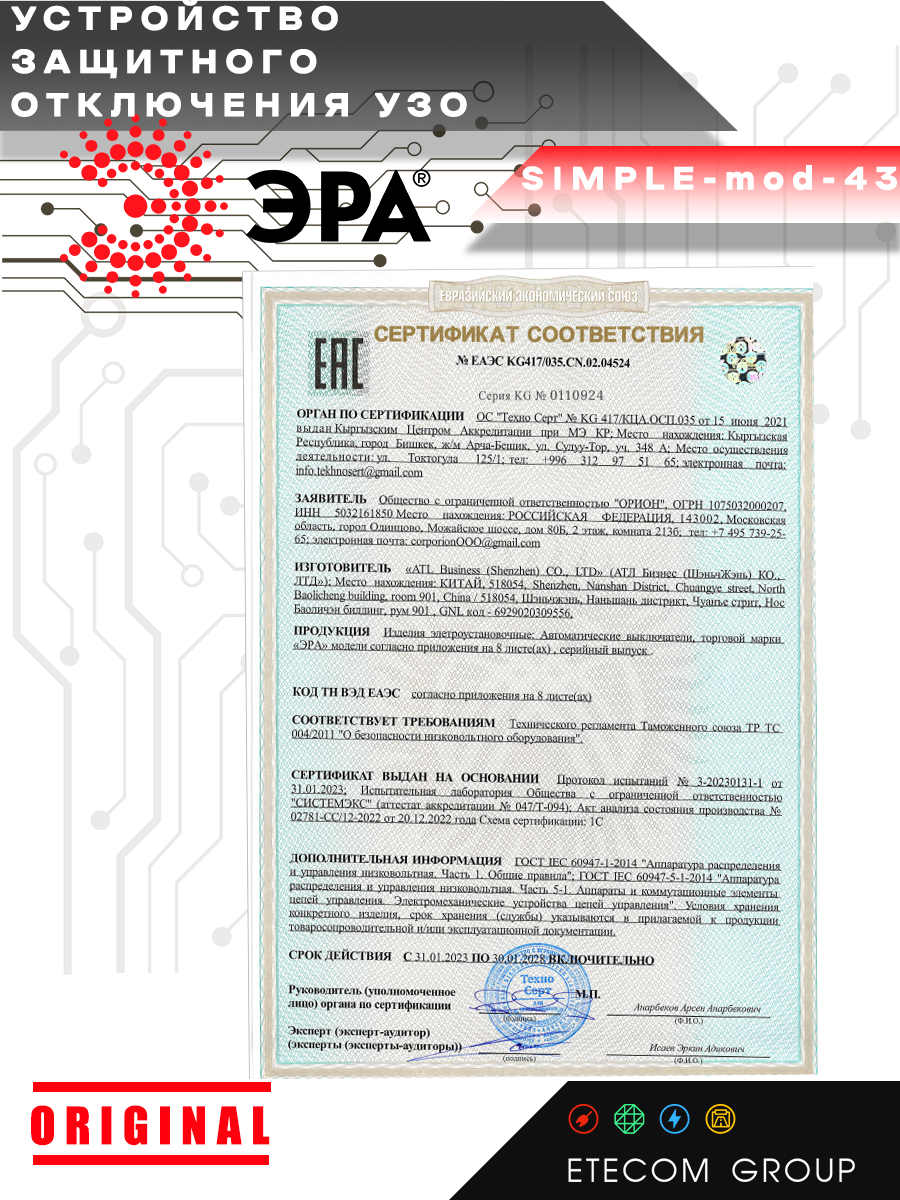 Выключатель диф тока/ УЗО ЭРА SIMPLE-mod-43 ВД-40 2P 40А 30мА AC интересное:
