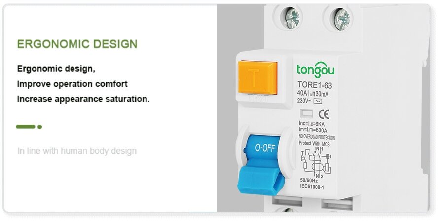 УЗО 16A двухполюсное, 30 mA ток утечки, 6KA, 230V интересное: