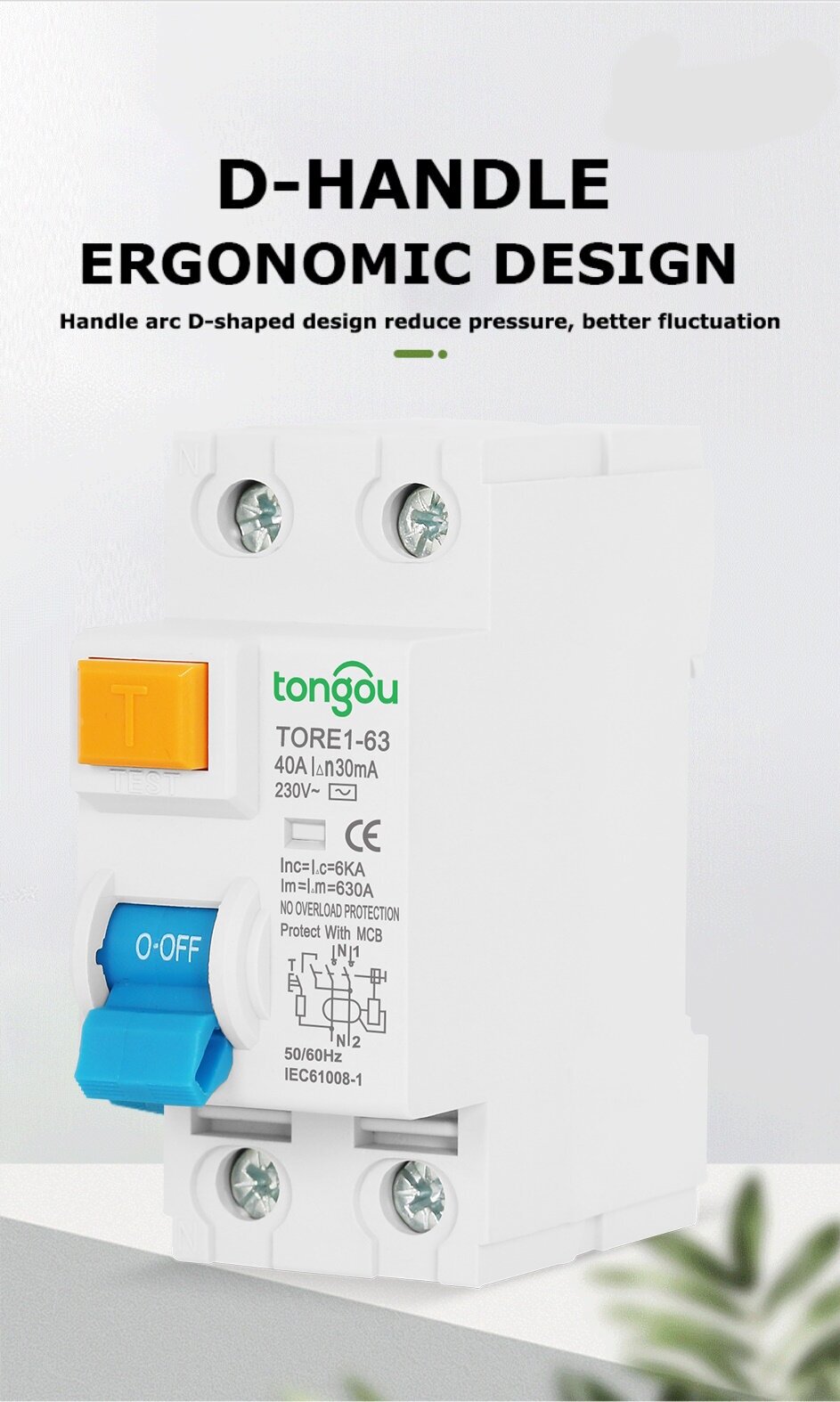 Купить УЗО 16A двухполюсное, 30 mA ток утечки, 6KA, 230V