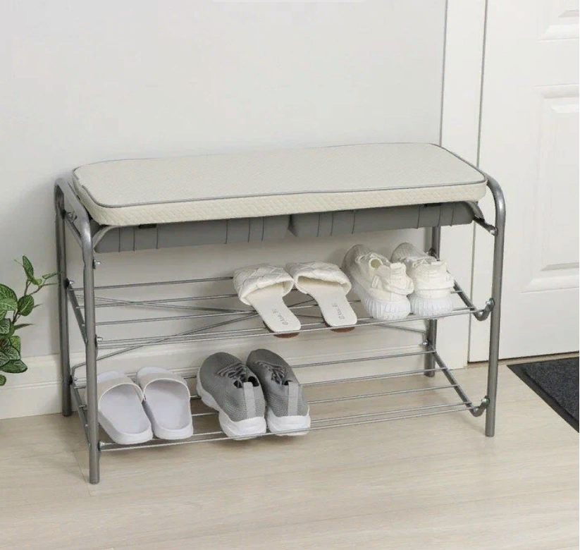 Этажерка для обуви с удлиненным сиденьем и полкой для хранения серый