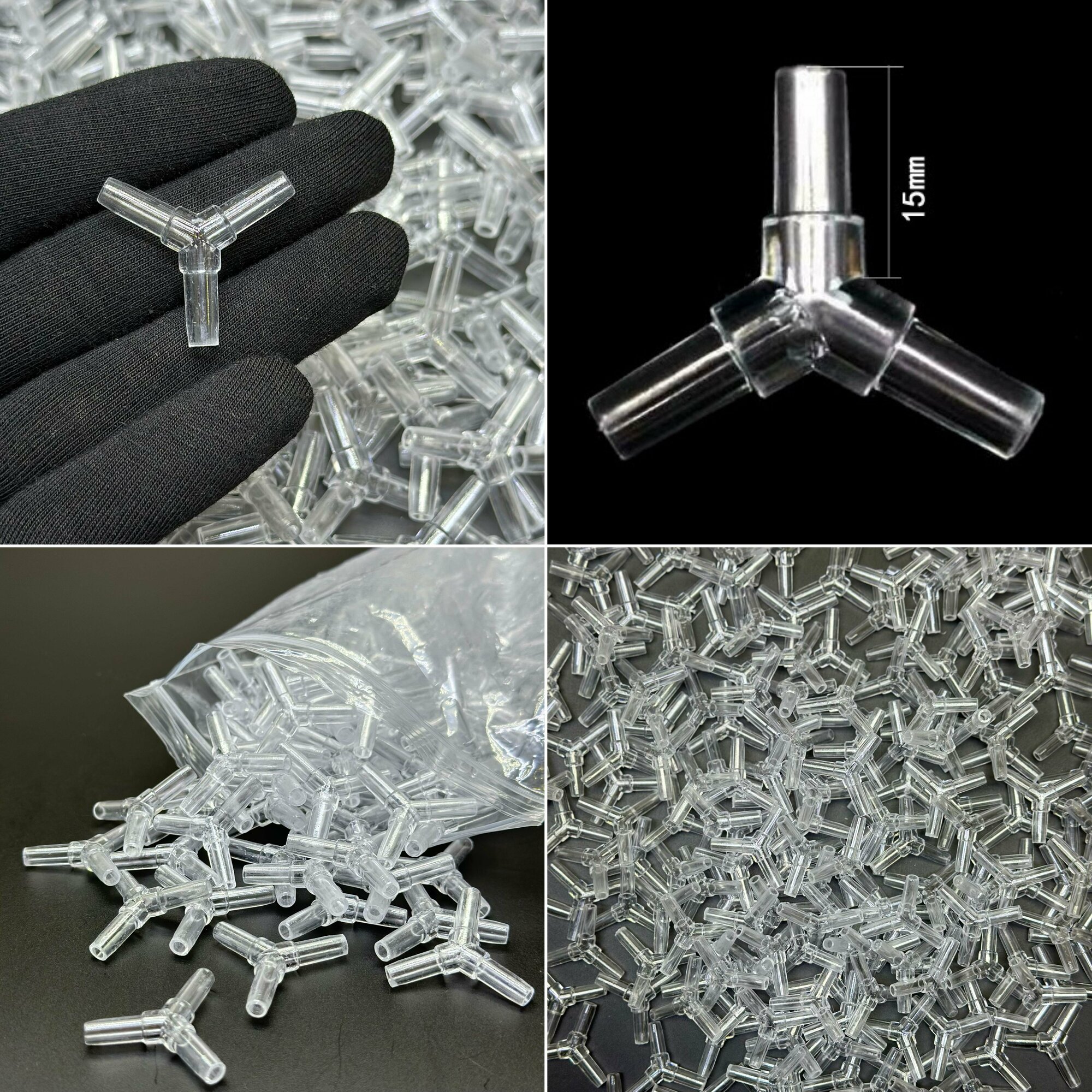 Тройник для аквариума 4 шт соединитель шланга 4 мм от компрессора / Y - образный прозрачный