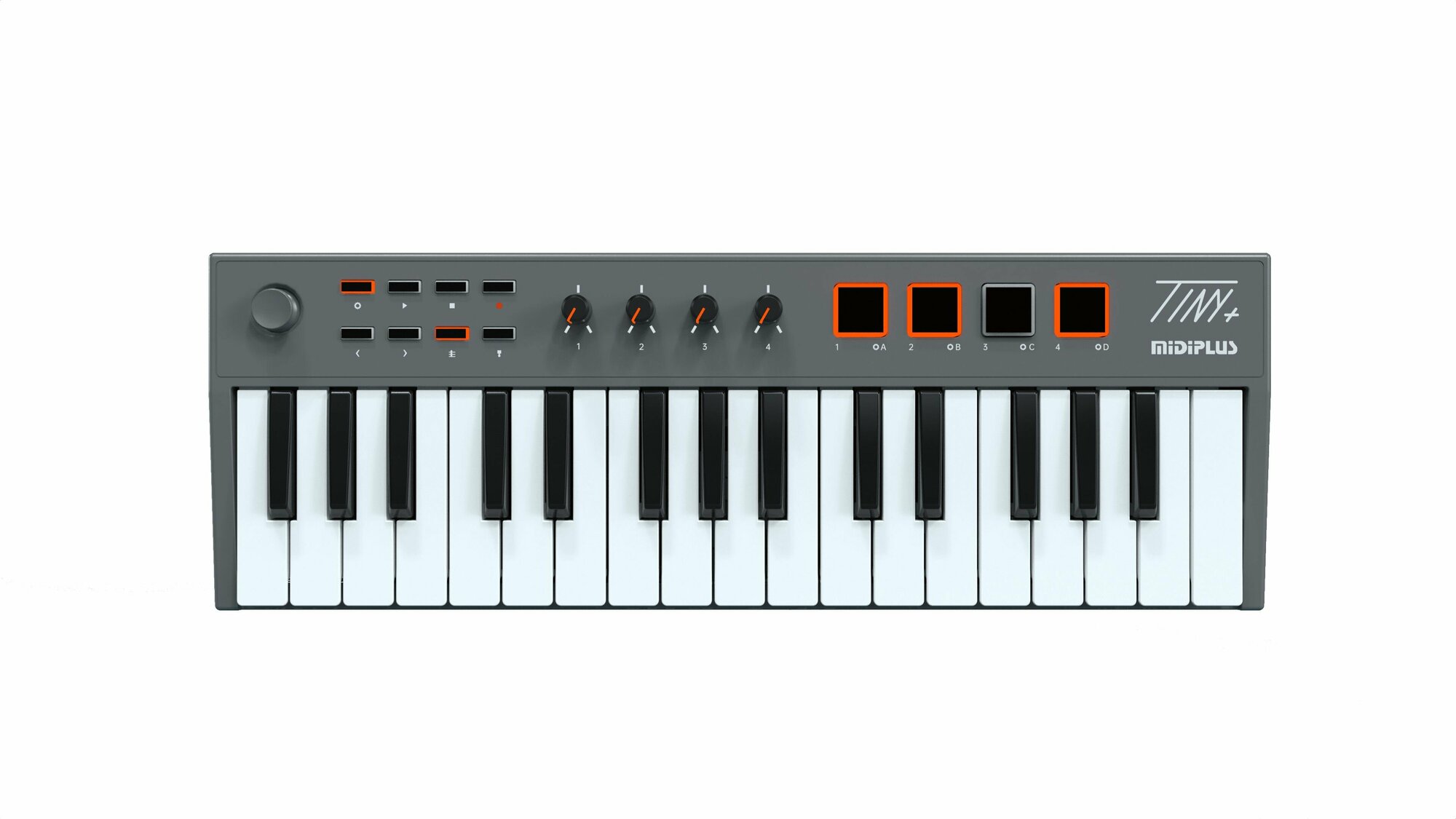 Купить Midiplus TINY+ - миди-клавиатура 32 клавиши с 4 пэдами и 4 регуляторами