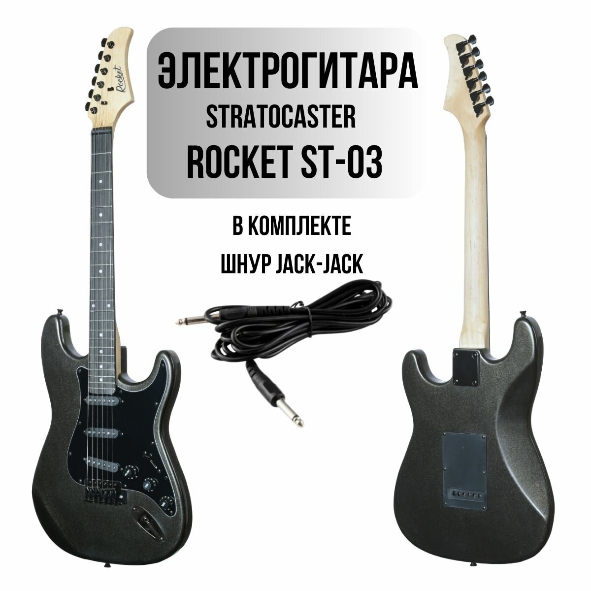 Электрогитара ROCKET ST-03 BK Stratocaster SSS черный металлик в комплекте шнур Jack-Jack фурнитура черного цвета интересное:
