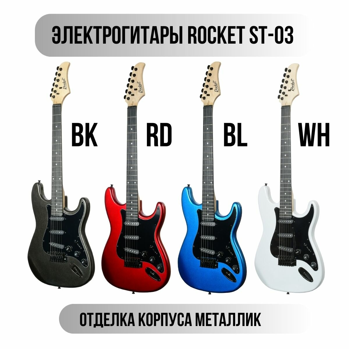 Электрогитара ROCKET ST-03 BL Stratocaster SSS синий металлик в комплекте шнур Jack-Jack фурнитура черного цвета интересное: