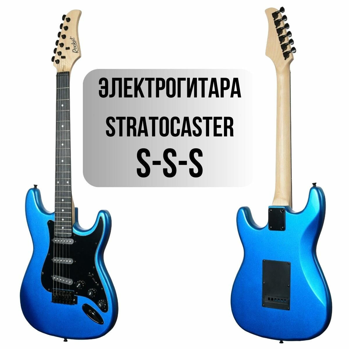 Купить Электрогитара ROCKET ST-03 BL Stratocaster SSS синий металлик в комплекте шнур Jack-Jack фурнитура черного цвета