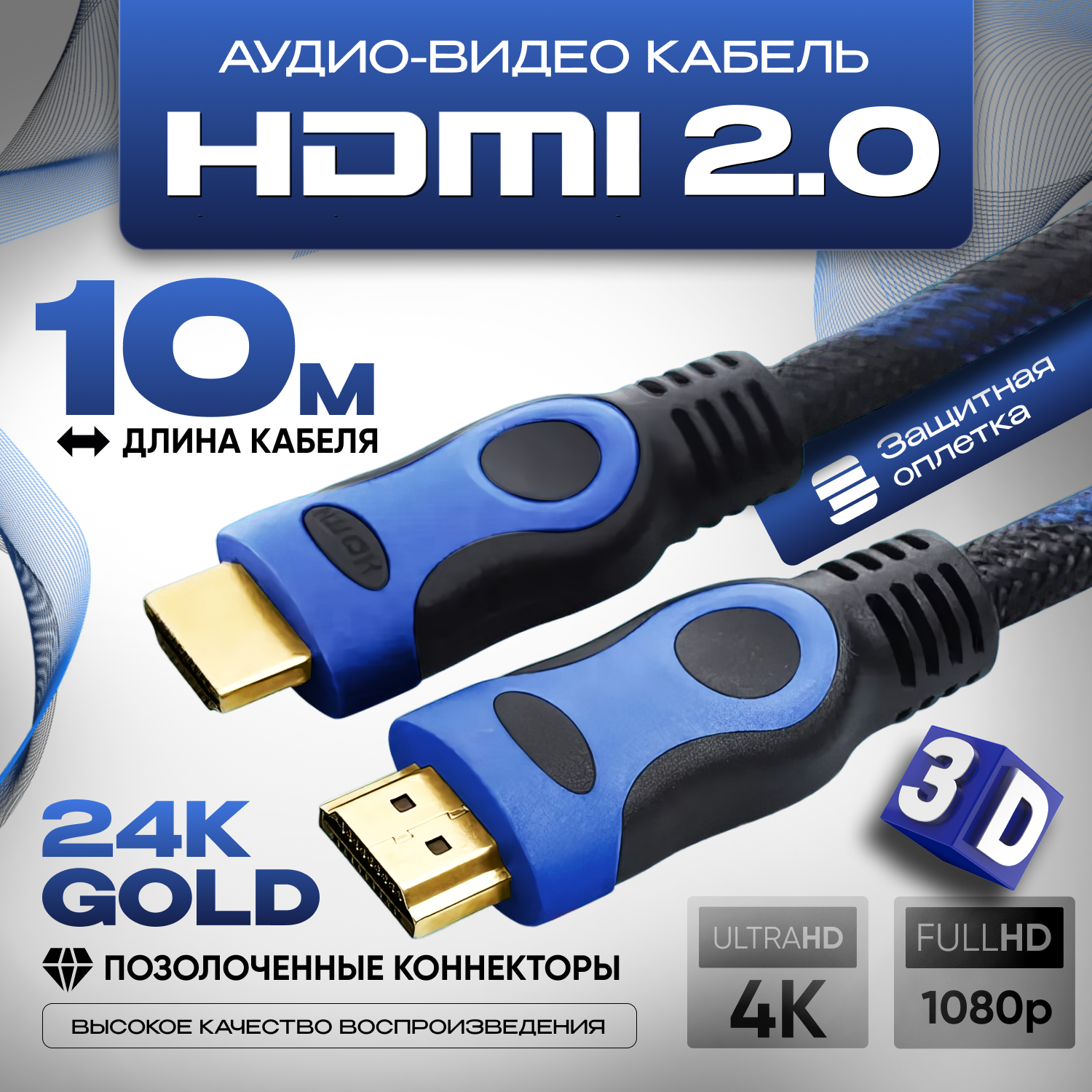 Купить Кабель аудио видео HDMI М-М 10 м, 1080 FullHD 4K UltraHD провод HDMI, кабель hdmi 2.0 цифровой, черно-синий