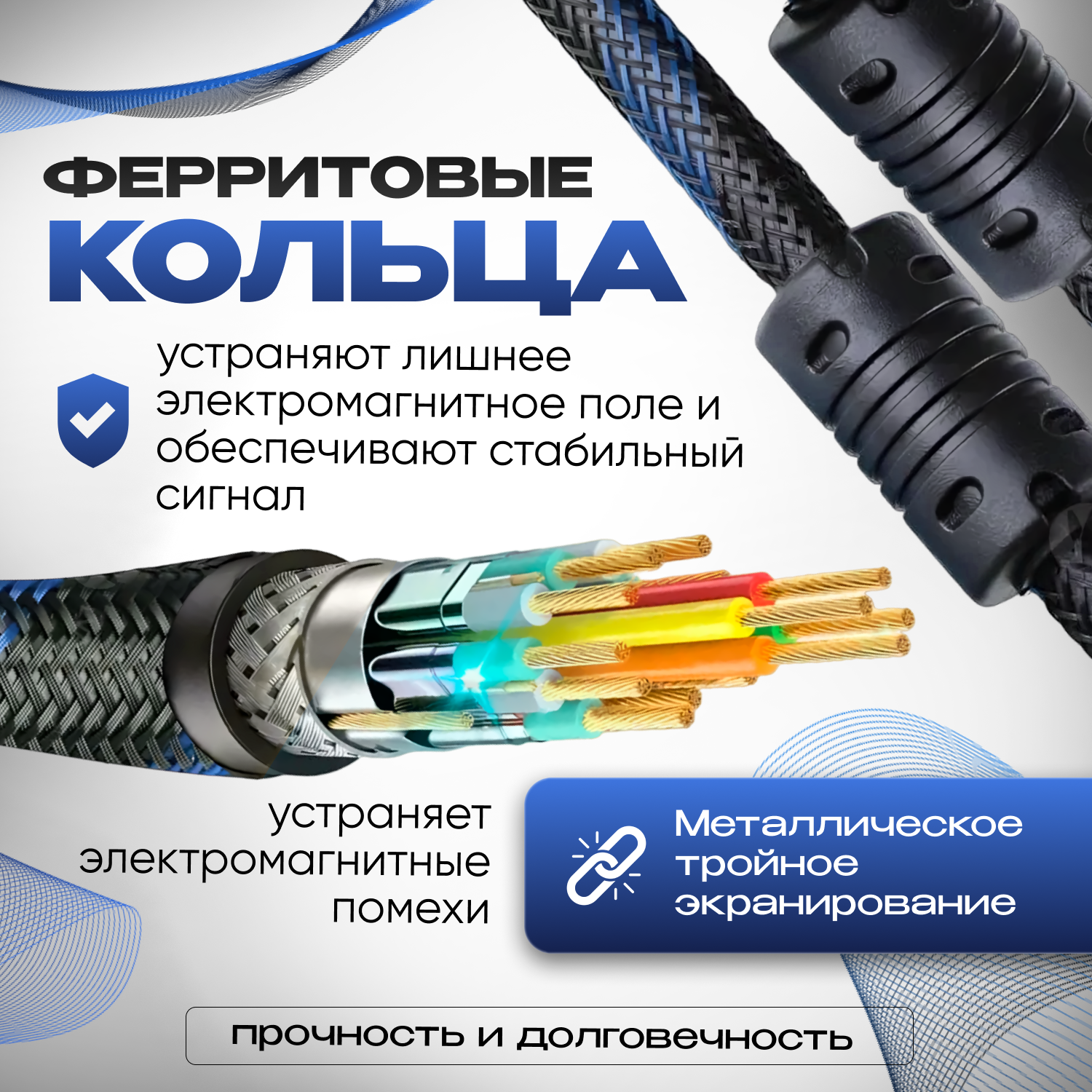 | Особенности | позолоченные контакты / позолоченный коннектор / тканевая оплетка / ферритовые кольца / экранированный кабель |