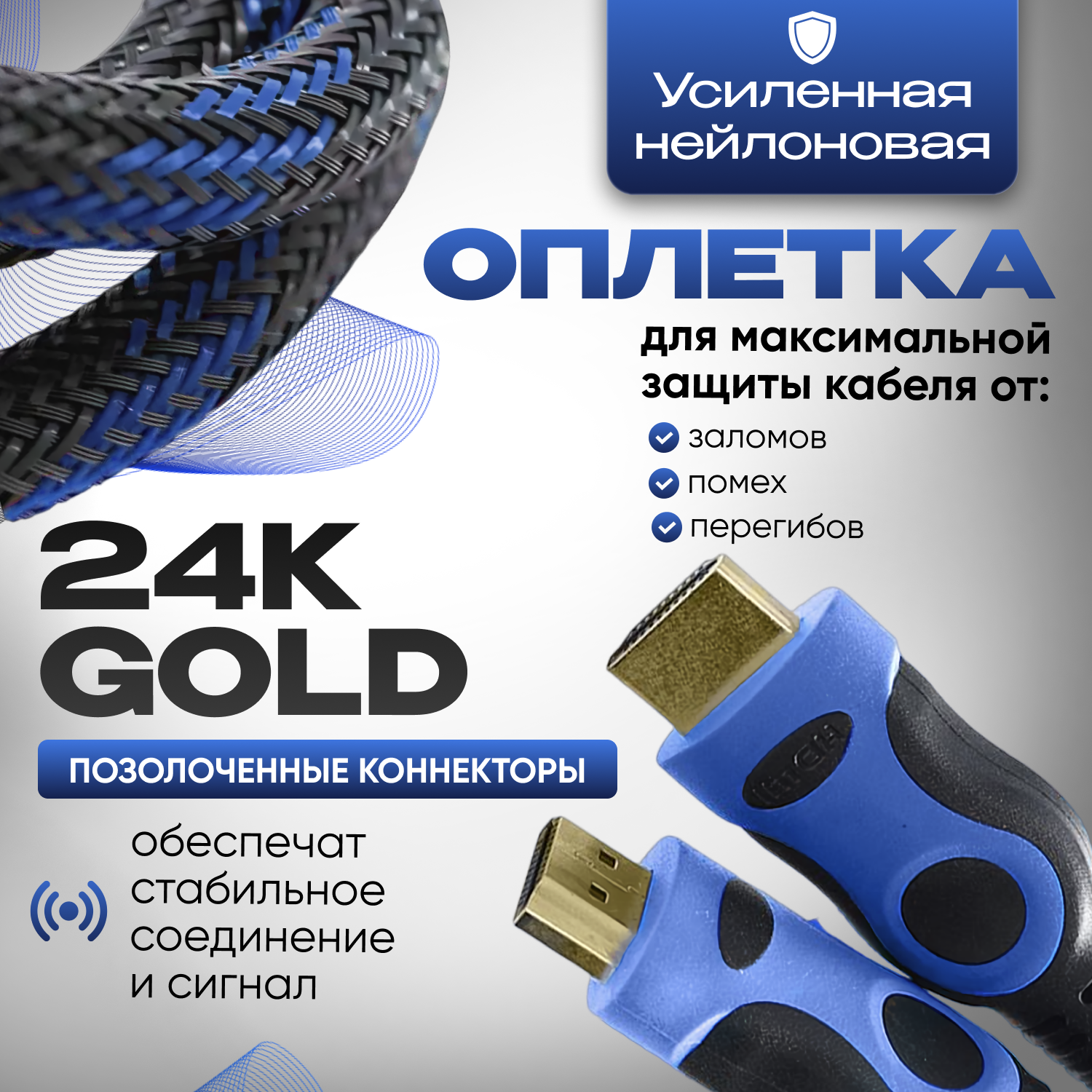 Кабель аудио видео HDMI 2.0 М-М 3 м, 1080 FullHD 4K UltraHD, провод HDMI цифровой, черно-синий