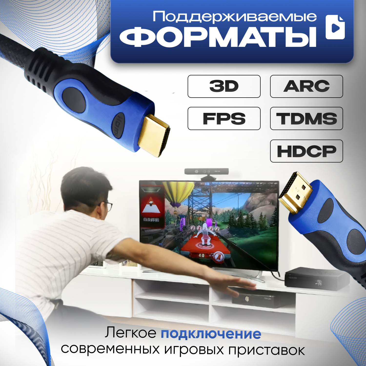 СохранитьКабель аудио видео HDMI М-М, 5 м, 1080 FullHD 4K UltraHD провод HDMI, Кабель hdmi 2.0 цифровой, черно-синий интересное: