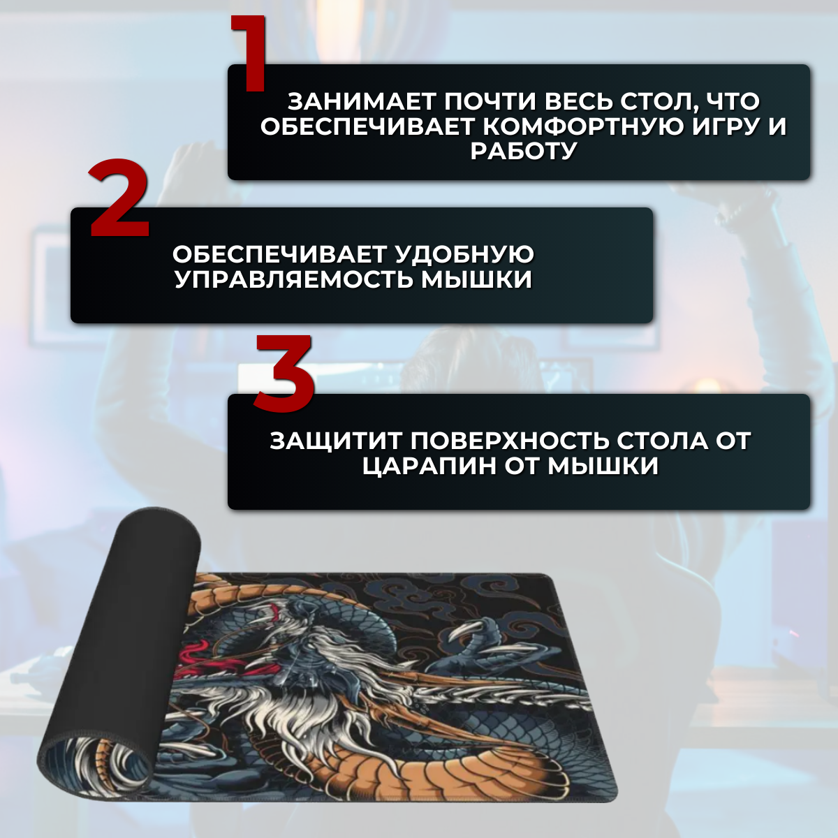 Коврик для мышки игровой большой, 900х400 мм, толщина 4мм. Специальная серия для киберспортсменов, Maxintro интересное: