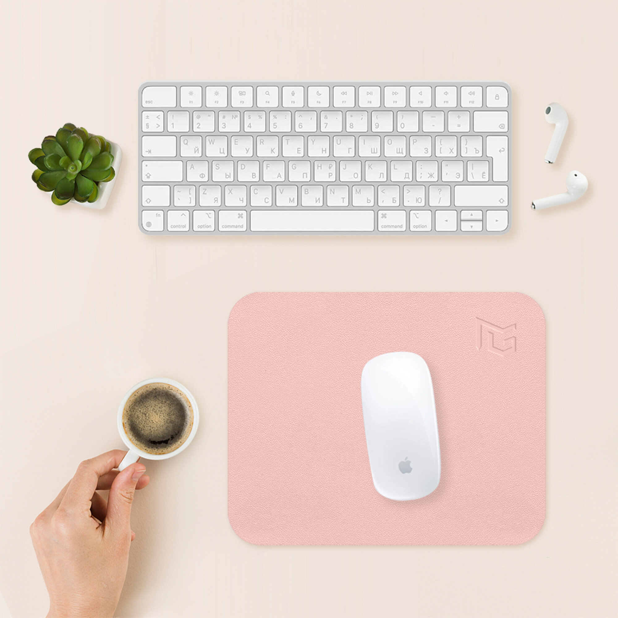 Коврик для мышки маленький кожаный молочный